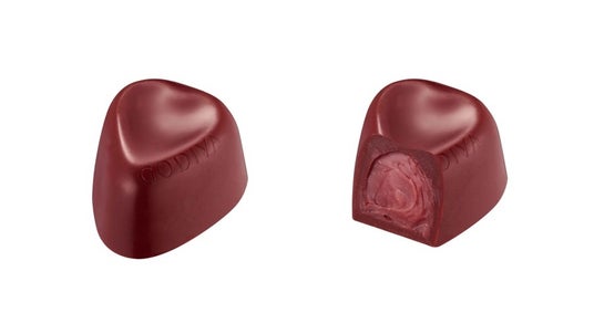 100周年を記念してリニューアルされたゴディバのシンボル「クール(ハート形のチョコレート)」。バーガンディーカラーの丸みを帯びたハート形のホワイトチョコレートに、爽やかな酸味のラズベリーガナッシュを閉じ込めました。まろやかな甘さの中に酸味が広がり、甘酸っぱい“キュン”とするようなやさしい気持ちを表現しました。
