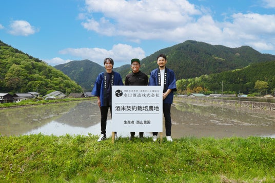 最上位スペックである「純米大吟醸酒」には、地域課題である高齢化や担い手不足に悩む久万高原町の若手農家・西山農園と連携し生産した復活させた、希少な県産酒米「山田錦」を使用しています。 当社は同農園と連携し、酒米の契約栽培を行う「地産地消の酒造りプロジェクト」を推進しています。本プロジェクトでは、酒米の出来高にかかわらず高単価での全量買い取りを保証することで、農家の収益安定化と高品質な酒米の安定確保を実現しています。地域農業の活性化に貢献しながら、愛媛の風土を表現する酒造りを行っています。