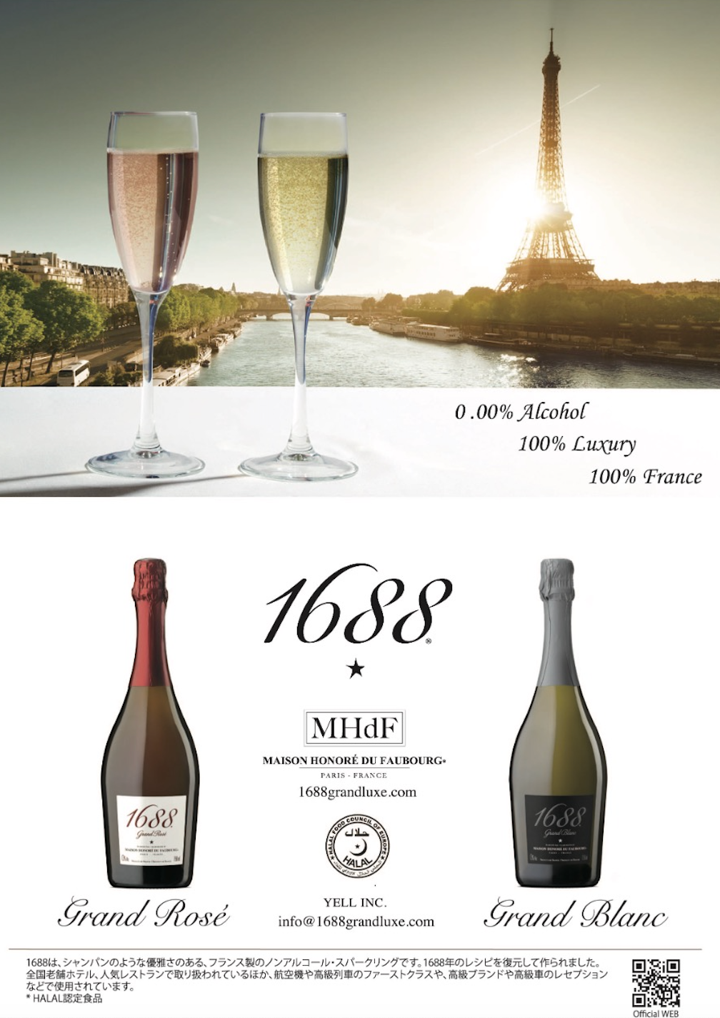 株式会社YELLが「HRSサービスコンクール」に協賛させていただいたのは、2015年の第9回開催からです。当時、弊社取扱の“1688 Grand Rose”と”1688 Grand Blanc”はHALAL認証を持つ高級ノンアルコール飲料として、首都圏の老舗ホテルや名店レストランなどで取り扱われ始めた頃でした。