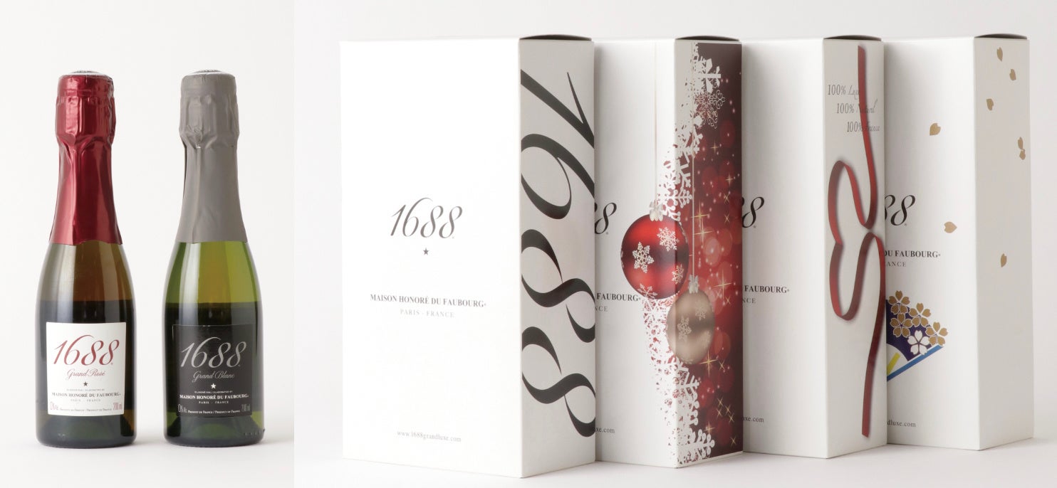 スパークリングワインの抜栓競技で使用されることになった“Paris’16 Blanc”は、“1688”の姉妹商品として2015年にデビュー。2024年のパリ五輪以来注目されている人気商品です。ギフトパッケージは、モノクロのスタンダードタイプとトリコロールカラーの2種類があり、豪華客船の飛鳥でのサービスや、高級車メーカーの納車時の贈答品としても採用されています。