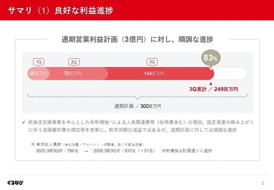 株式会社ぐるなび(本社:東京都千代田区、代表取締役社長:杉原章郎 以下、ぐるなび)は2026年2月4日(水)に、2026年3月期 第3四半期決算を発表しました。