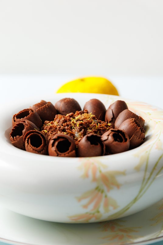 ▼ムース・オ・ショコラ・ユズ「ル・ショコラ・アラン・デュカス」のオープン以来人気のムース・オ・ショコラを春らしく一新。カカオ75%のマダガスカル産ショコラのムースの下にヘーゼルナッツとカカオニブを合わせたザクザクのショコラとさわやかなユズのコンフィが隠れています。トップには、フレッシュなレモンゼストと、花びらのようなショコラを飾りつけました。カカオの芳醇な風味と爽やかなユズのアクセントが春の訪れを感じさせます。