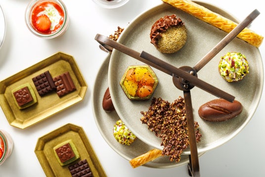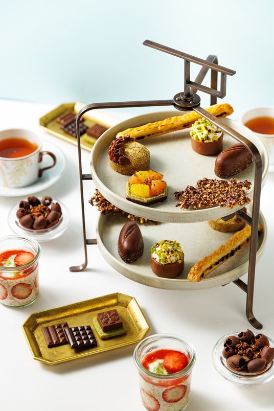 ▼アフタヌーンティー「ル・グテ」春限定メニュー春の新作デザート「フォンテーヌブロー・フレーズ」、オレンジやピンクグレープフルーツをトッピングした「ビスキュイ・フレ・アグリュム」、ショコラとユズ香る「ムース・オ・ショコラ・ユズ」をミニサイズでお楽しみいただけるほか、香ばしいプラリネカフェ、ムース・ショコラ・カフェなどを包んだコーヒー豆の形をしたショコラ「グレン・ド・カフェ・ショコラ」、サクサクのパイ生地の間にショコラを挟んで焼き上げたフランスの伝統菓子「パン・スイス・ショコラ」に加えて、独特な食感のポレンタやアーモンドパウダーで焼き上げた「フィナンシェ・ポレンタ」、ふんわり食感のクリームと厳選されたピスタチオをトッピングした「ケーク・ショコラ・ピスターシュ」、抹茶とアーモンドのプラリネがたっぷり詰まったサクラデザインのショコラをトッピングした「カレ・ピュール・ブール・サクラ」など約10種のクリエーションをお楽しみいただけます。