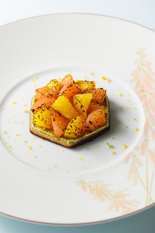 ▼ビスキュイ・フレ・アグリュム香り高いフランス産バターをたっぷり使った「ル・ビスキュイ・アラン・デュカス」の人気商品「ピュール・ブール」をオレンジ風味に焼き上げ、片面をショコラでコーティング。東京工房で仕立てたオレンジのマーマレード、フレッシュなオレンジとピンクグレープフルーツをたっぷりトッピングした、爽やかでフレッシュなビスケットのデザートです。