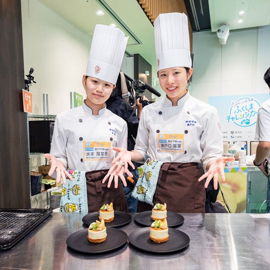 全国高校生を対象に、キウイ、パッションフルーツ、サツマイモ、バナナのいずれかを使ったスイーツのレシピを募集。547組の応募の中から、食材ごとに3組計12組の出場者を決定。決勝大会では大熊町賞、富岡町賞、楢葉町賞を選出し受賞者に審査員を務める超一流パティシエと一緒に、各食材を使ったスイーツを開発する副賞が贈られました。