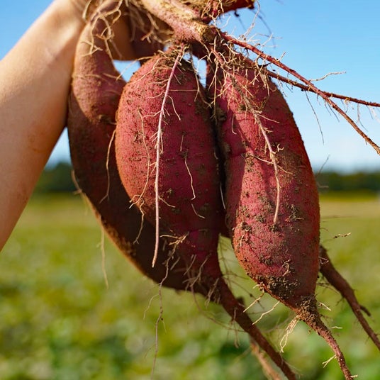 ■楢葉町のサツマイモ楢葉町は、「スイーツ甲子園 ふくしまチャレンジカップ」の決勝大会が開催されるサッカー日本代表のナショナルトレーニングセンター「Jヴィレッジ」の所在地です。サッカーの聖地であるとともに、復興のシンボルとしてさまざまなイベントが行われ、年間を通じて多くの人が訪れています。楢葉町の基幹産業である農業の復興に向けて今、新たな特産品として栽培が広がっているのがサツマイモです。2017年に試験栽培を開始し、和・洋菓子の製造販売を手掛ける白ハト食品工業が楢葉町に設立した「福島しろはとファーム」などが本格的な栽培に乗り出し、一大産地を目指しています。新ブランドとして栽培されている「ふくしまゴールド」は、甘味と食感に優れたスイーツにピッタリの品種です。