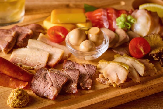 - 燻製盛り合わせ(5種または全種盛り合わせ)をご注文