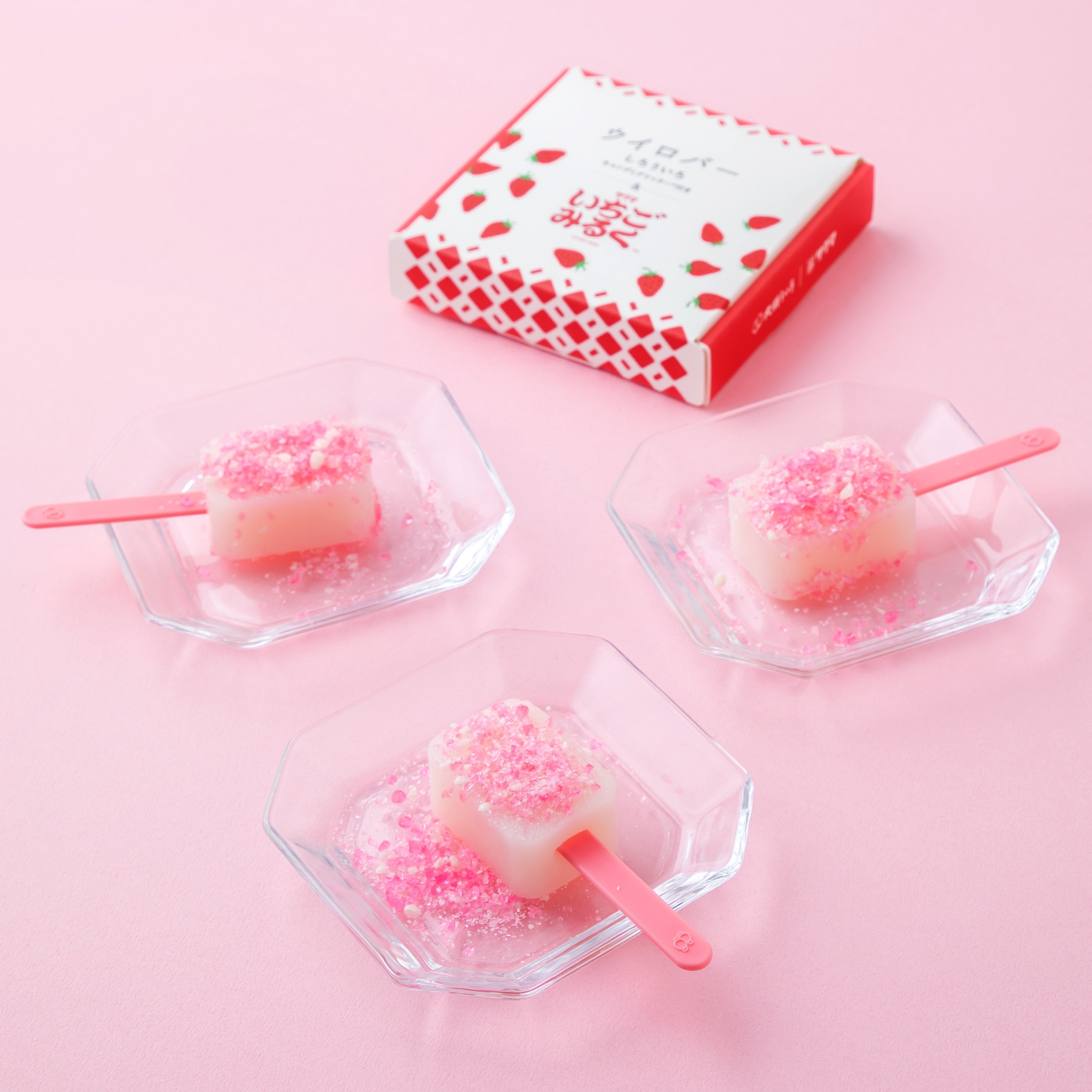今回のコラボレーションでは、どこか懐かしく、思わず笑顔になる「いちごみるく」の風味を、ういろのもちもち食感と楽しむことで、新しい食感を生み出しました。