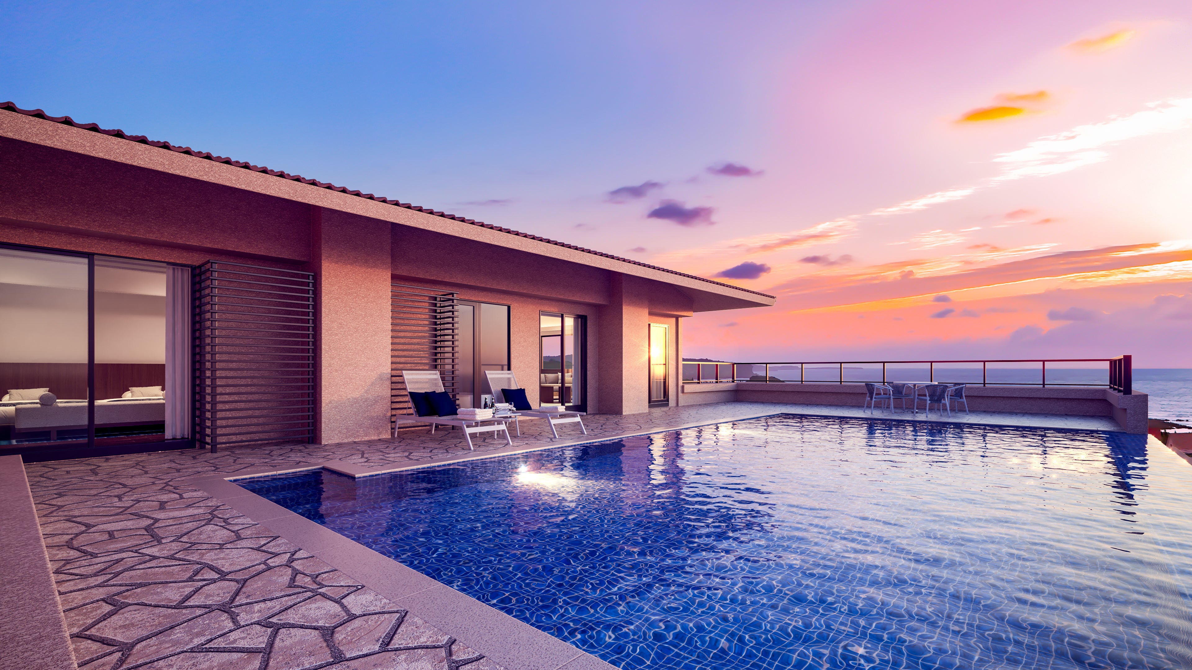 オーシャンビューや、移ろいゆく宮古島の自然のグラデーションの中で、特別なひとときをお過ごしいただけます。中でも最上階に位置する3つのスイートは、総面積270平方メートル を優に超える、プライベートプール付きのペントハウス。宮古島の海と空が織りなす“蒼の楽園”を心ゆくまでお楽しみいただけます。