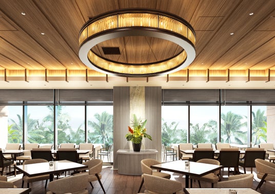 ロビーから続くアプローチやダイニングゾーンまでは、ナチュラルモダンを基調としたインテリアが、訪れるゲストをお迎えいたします。1階には自然光が降り注ぐ開放的なダイニングのレストラン、隣接の別棟には、特定クラスご宿泊のゲストがご利用可能なエグゼクティブラウンジを設置。島の恵みをふんだんに使用したブッフェメニューなど、多彩な食のエクスペリエンスをご提供いたします。