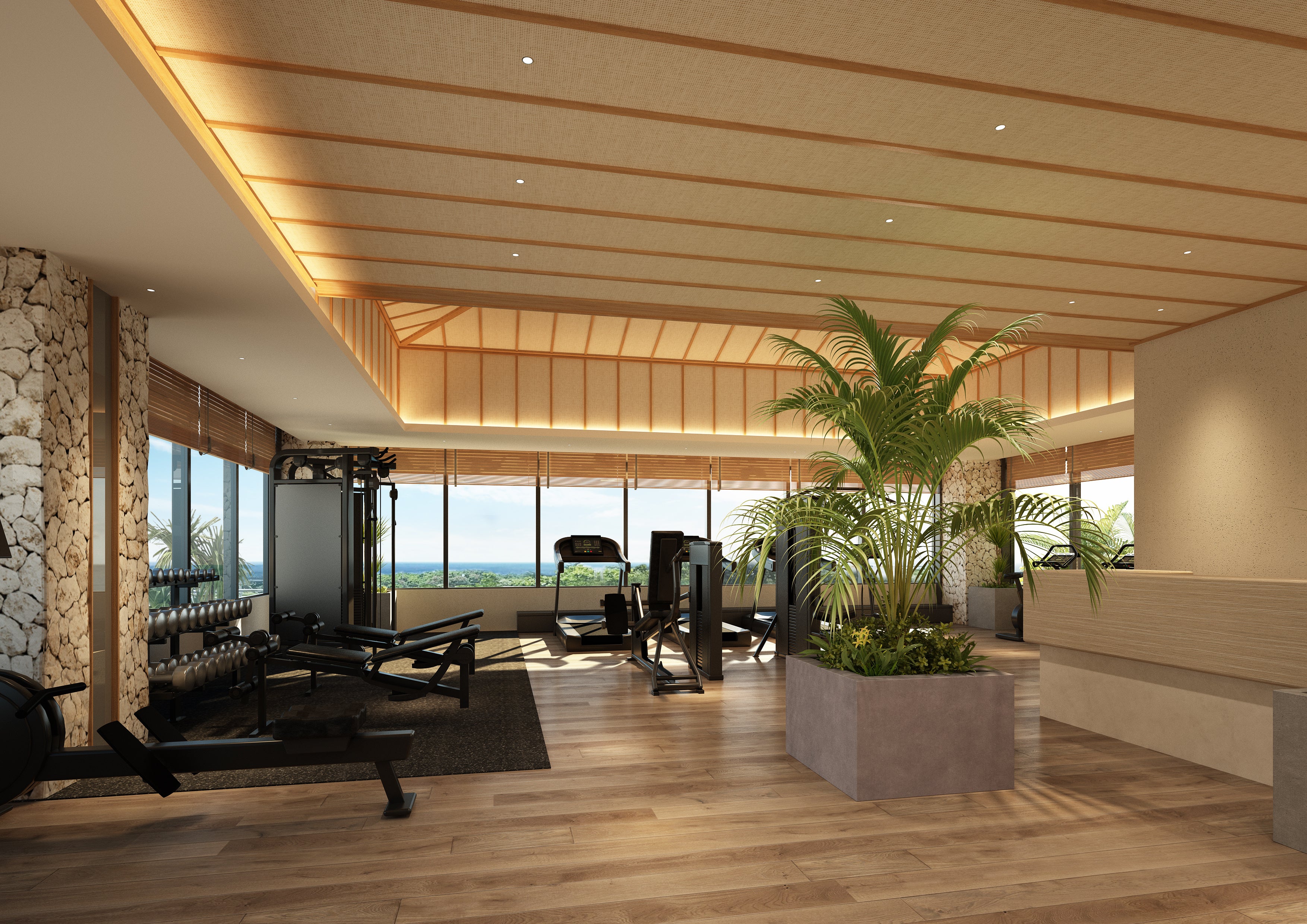 1階には、海と空のパノラマの絶景を背景にしたゲスト専用のインフィニティプールの他、フィットネスセンターやサウナを完備しており、ゆっくりと流れる島時間の中で、心と身体を整えながら過ごすリトリートステイを謳歌することができます。