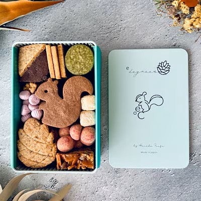 リスと戯れる森のクッキー缶/ショップ名:ひかりのたねバターの香りが豊かでくちどけの良い11種のクッキー。可愛いリスのモチーフで、心温まるご褒美にぴったりの一缶。