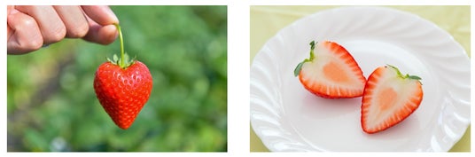 「とちあいか」(品種名:栃木i37号)は2018年に開発された栃木県のオリジナル品種です。酸味が少なく甘さが強いのが特徴で、そのまま食べても、ケーキなどのスイーツに添えても美味しく、大きさはとちおとめとスカイベリーの中間くらい。縦に切ると、断面がハート型に見える味も見た目も幸せいっぱいのいちごです。いちごの品種開発は数年かけて行います。「とちあいか」の場合、大粒で甘く、収穫期間が長くて病気に強いという特性を持つ系統を選抜してきました。とちおとめに代わる、栃木県を代表するいちごとして人気上昇中です。