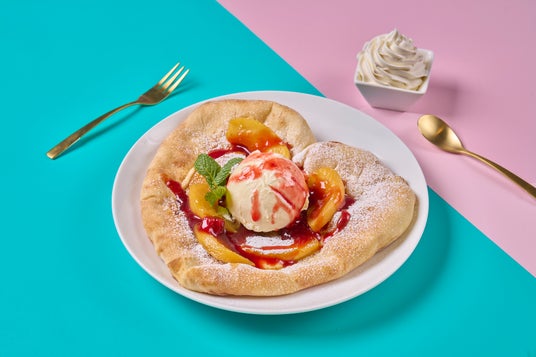「アップルベリーキャラメルピザ」は、ハート形のピザに、キャラメリゼした林檎とベリーソースをトッピング。仕上げにのせたバニラアイスが熱々のピザの上で程よく溶け合い、ひんやり×あたたかの絶妙なハーモニーを楽しめます。フルーティーな甘酸っぱさとコクのある甘さが広がるデザートにぴったりの1枚です。