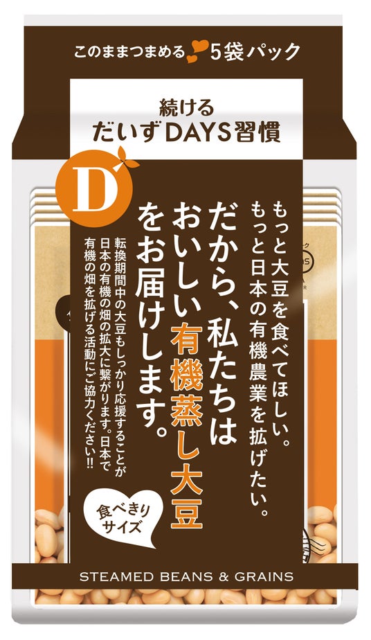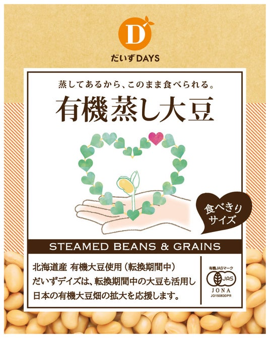 マルヤナギ小倉屋のグループ企業として、2012年に設立。有機蒸し大豆や発芽大豆などの大豆加工品を製造・販売しています。オーガニック(有機)、国産原料、無添加にこだわり、おいしく手軽に大豆を取り入れられる「蒸し大豆」のリーディングカンパニーとして、食卓の健康や、持続可能な農業を支援しています。規格外の豆を利用した製品化や、有機農業の振興、環境に配慮した栽培法(コウノトリ育む農法など)で育った黒豆の活用など、SDGsへの取り組みも行っています。だいずデイズ公式サイト:http://daizu-days.co.jp/