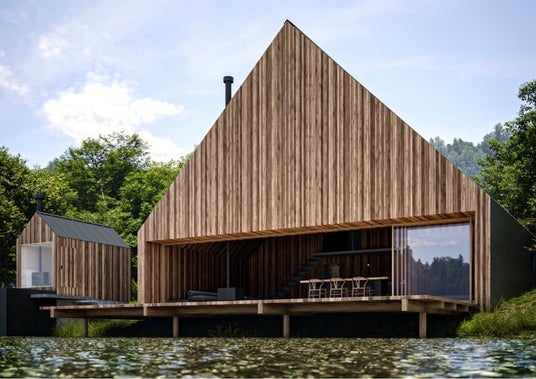 (※本物件完成予想図:木崎湖を一望する、開放感あふれるモダンリゾートヴィラ)