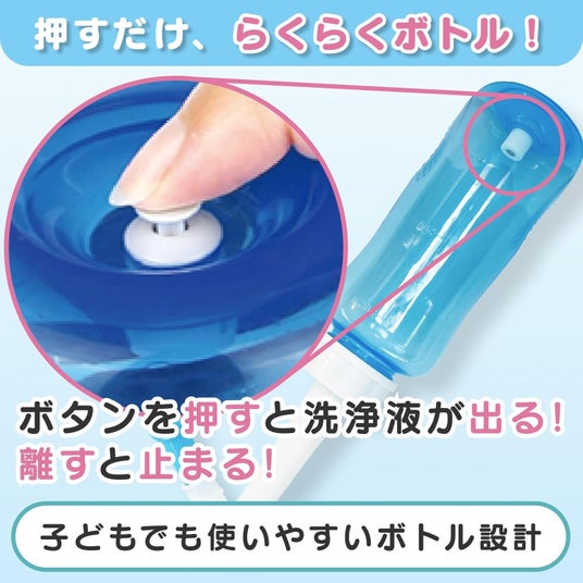 ハナリラは底面のボタンを押すだけのワンプッシュ洗浄。