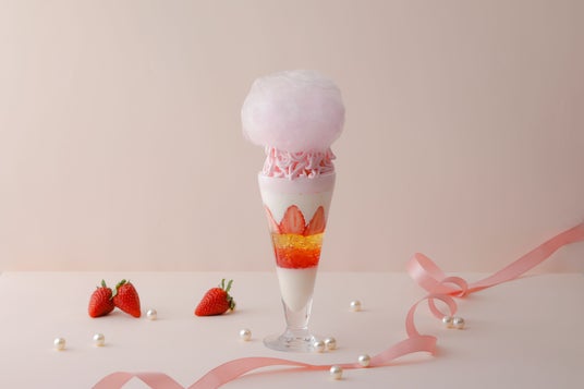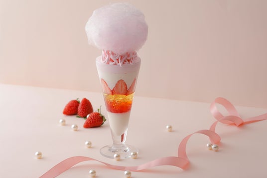 和歌山県産のオリジナル品種「まりひめ」をメインにあしらった春限定のパフェです。いちごの甘さを引き立てるヨーグルトのエスプーマや、濃厚なピスタチオアイスが織りなす奥深い味わいが魅力。南高梅ゼリーの爽やかな酸味といちごソースが全体を引き締め、ミルクプリンでやさしい味わいを添えます。綿あめの中に隠れたいちごや、チョコレートディスク、パールクラッカンの食感が楽しさを演出。春らしい華やぎと驚きに満ちた一品をご賞味ください。
