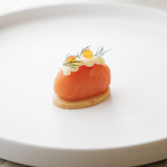 スモークサーモンサブレレモンの効いたクリームチーズと、スモークサーモンが絶妙に重なり合うサブレ。いくらとディルをのせ、口に運ぶとスモークの深みと上品な香りが広がる奥行きのある味わいをお楽しみいただけます。