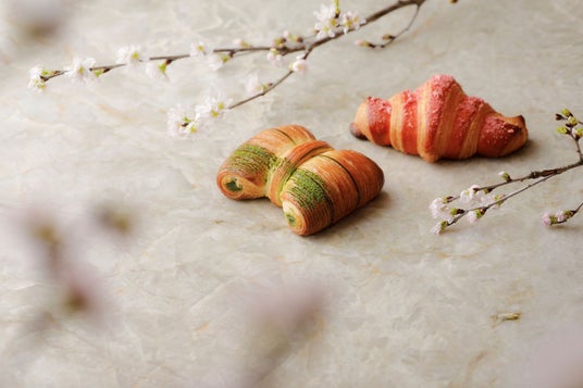 ホテル内で焼き上げるベーカリーからは、濃厚な抹茶となめらかなカスタードクリームを練り込み美しいレイヤーで仕上げた抹茶パンスイスと、桜風味のアーモンドクリームを包み込んで焼きあえたピンク色が春らしい見た目の桜アーモンドクロワッサンが登場します。