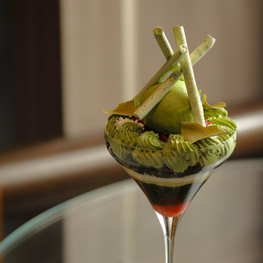 ザ・ラウンジ&バーでご用意する「抹茶パフェ」は、京都の麗らかな春をグラスに閉じ込めたひと品。