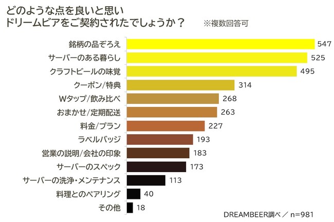 ▼ドリームビアを導入したきっかけは“銘柄の品ぞろえ”が1位に!
