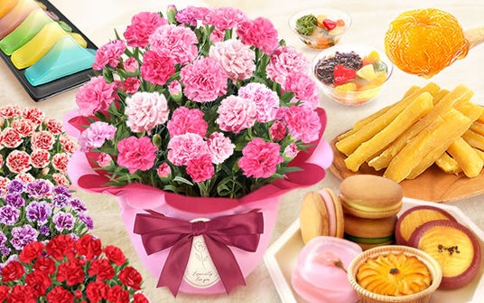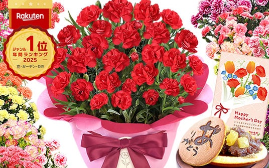 楽天市場「花・ガーデン・DIY」ジャンル、2025年年間ランキング1位のカーネーションと和菓子のセット