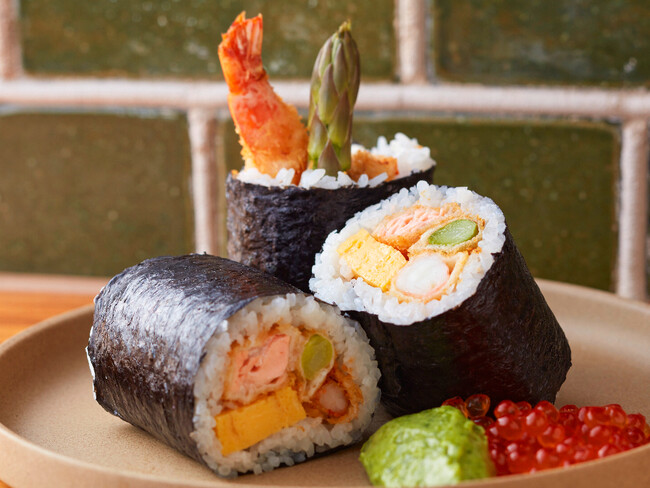 クリームチーズが味のアクセント。甘みのある玉子で包んだ軽やかな味わいのサラダ恵方巻き。