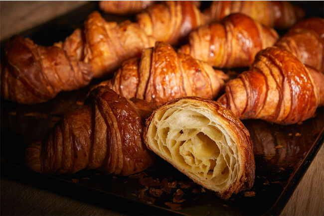 更に自家製法でクロワッサンの生地の折り込みにそれぞれの層と層の間に絶妙に空気を含ませることで、「ザクッ」と食感と、芳醇な発酵バターの香りが「フワッ」と広がります。