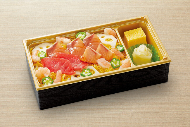 脂のりの良い「鰤(ぶり)」の旨みと、しっかりとした歯ごたえが特徴の「平政(ひらまさ)」の両方の長所をいいとこどりした「鰤平(ぶりひら)」を使った、「鰤平と鮪の海鮮ちらし重」が1,078円で新登場!!