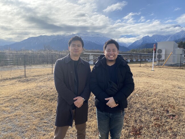 日本百名水でも知られる長野県安曇野。案内をしてくれたのは、株式会社 安曇野ミネラルウォーター(本社 工場 長野県安曇野市穂高有明5945番地100)代表取締役 新井泰憲さん(左)