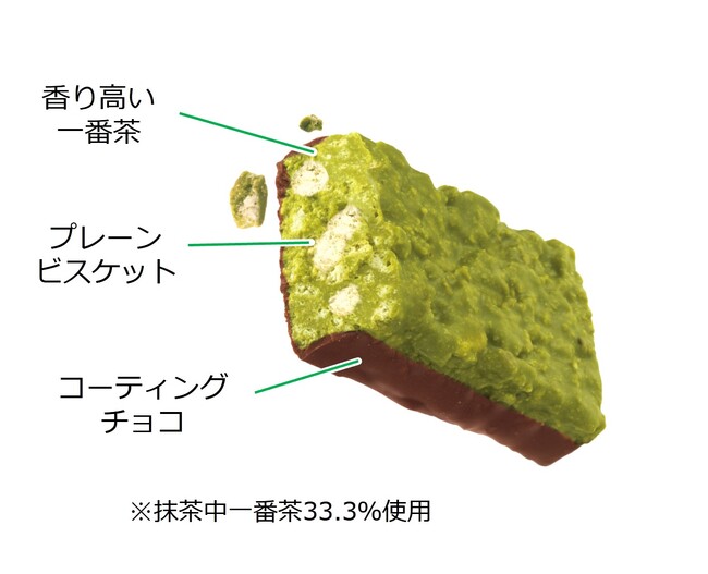 まず楽しんでいただきたいのは、お菓子を口元に近づけたときからふわっと広がる一番茶の香りです。また、抹茶の味わいとチョコのおいしさのベストバランスを追い求め、食べ終わりはまろやかな風味になるようになど試行錯誤をして味わいを作り込みました。今回のリニューアルで新たに加えた一番茶のさわやかな香りから始まり、食べ終わりの余韻までこだわった味わいをどうぞお楽しみください。