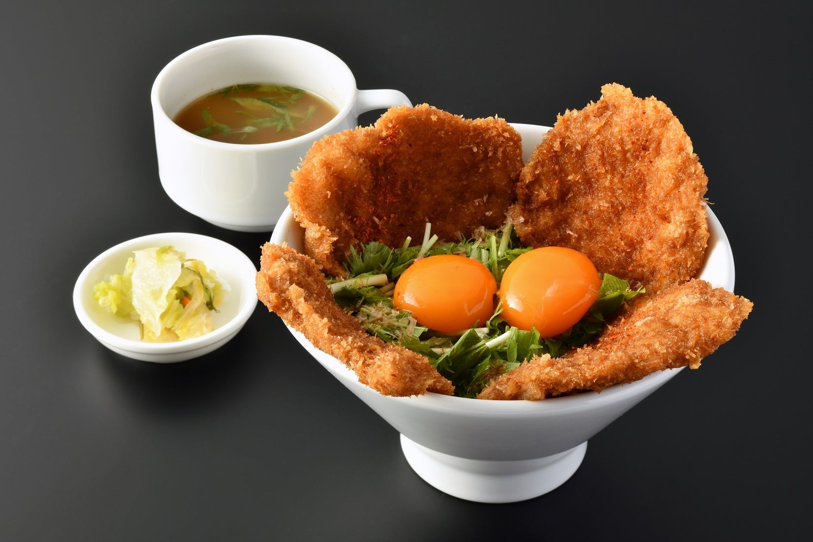 TKG×タレかつ飯オリジナルのタレかつとTKG(卵かけごはん)との組み合わせ。