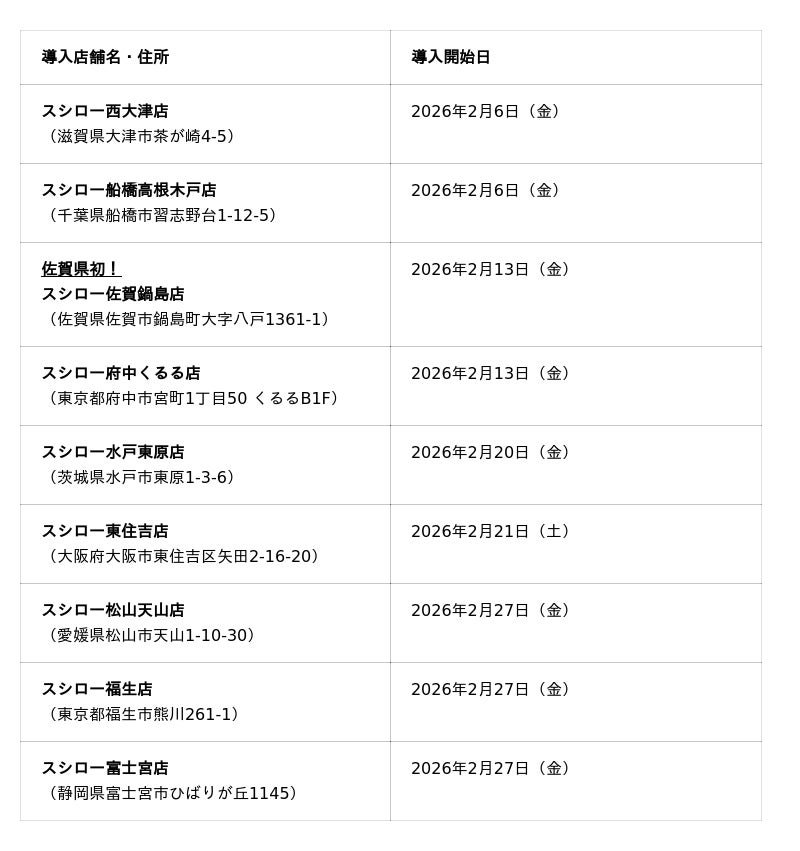 株式会社あきんどスシロー(本社:大阪府吹田市、代表取締役社長:新居 耕平)は、多くのお客さまからのご好評を受け、「デジタル スシロービジョン」、通称「デジロー」の導入を加速しております。県内初として佐賀県「佐賀鍋島店」に導入し、その他のエリアでも導入店舗を拡大いたします。2026年2月末時点で全国の「デジロー」導入店舗数は、150店舗を突破いたします。