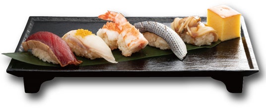 江戸前漬けまぐろ/すずき昆布〆からすみのせ/茹で天然車えび/こはだ/煮はまぐり
