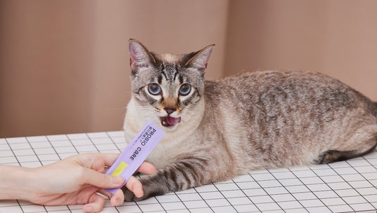 ピュアピューレ デンタルケア天然海藻抽出物アスコフィランと乳酸菌(クリスパタス菌KT-11株)を配合。歯磨きが苦手なねこの口内環境の健康をサポートします。