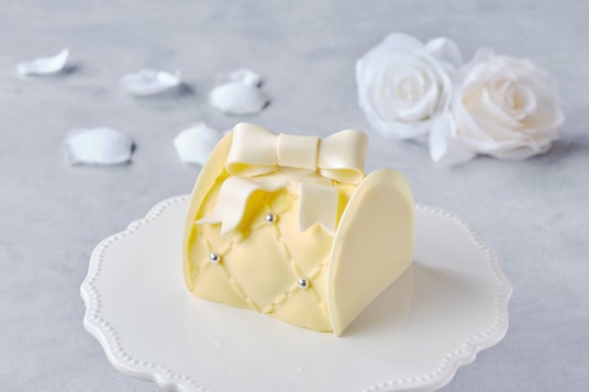 Sweetie Whiteは、エレガントなシルバーパールリボンをあしらったホワイトチョコレートのムースケーキです。