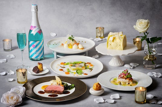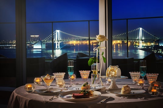 また、レインボーブリッジの煌めく夜景を一望するレストラン「マンハッタン」では、ブルースパークリングワインでの乾杯から始まる期間限定スペシャルコースを提供。キャンドルでデコレーションした特等席で、前菜、魚&肉のメインディッシュ、そしてシェフ特製の真っ白なデザートをお楽しみいただけます。