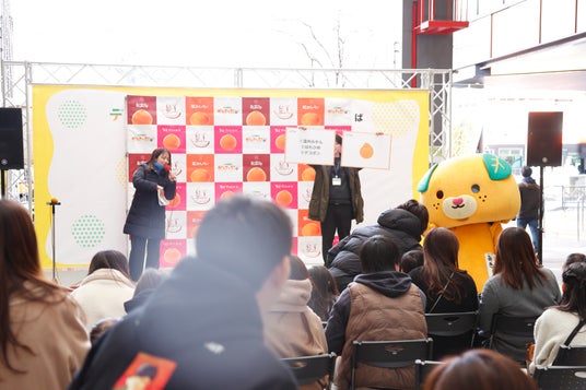 愛媛県産食材や事業者の魅力を発信する「えひめ愛ある食の市」の特設ステージにて実施。会場全体の賑わいの中、県産かんきつの“旬の魅力”にスポットを当てたステージとして、来場者の注目を集めました。