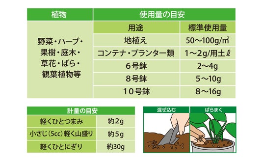 使用方法: そのまま土に混ぜ込む/ばらまく