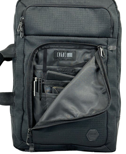 多彩なフロントポケットに加え、内側にはPCポケットも備え、使いやすさにも配慮しています。