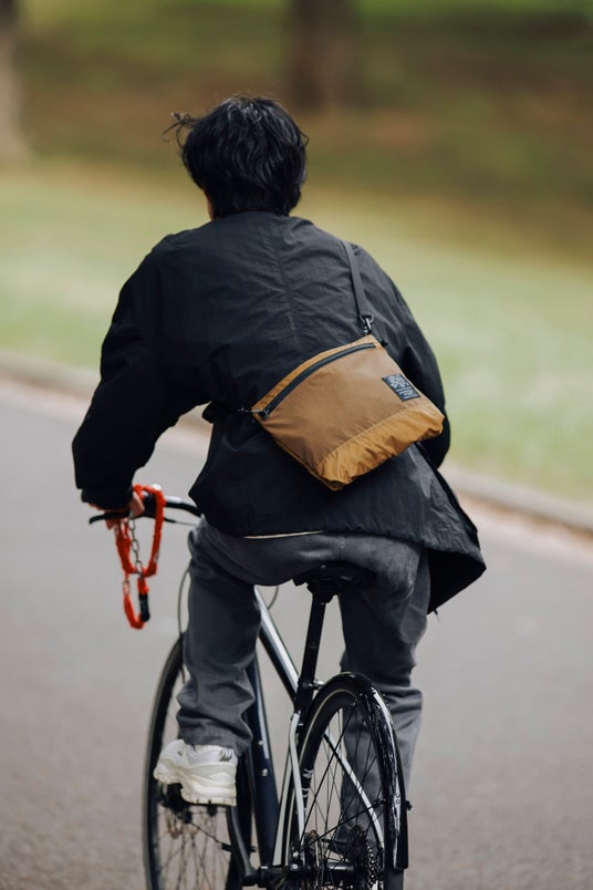 テントや寝袋などにも採用されているリップストップナイロンを使用した、丈夫で軽量なボディバッグ。