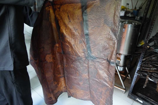 数週間かけて、ナノファイバーが液面上で絡み合い、厚く耐久性のあるマット(ペリクル)を形成。これがレザーの原材料となる。