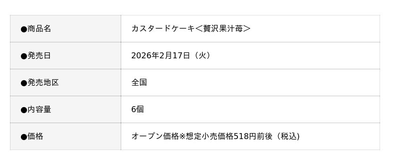 本商品は、従来品の2倍(*1)のソースをたっぷり閉じ込めた、とちあいか(*2)の贅沢な味わいが楽しめるカスタードケーキです。ひとくち召し上がると、いちごの甘みと香りが口いっぱいに広がり、とろ~っと溢れ出すソースが至福なひとときを演出します。“プチ贅沢消費”や“おうちカフェ需要”が高まる中、ティータイムやリラックスタイムにぴったりの一品です。