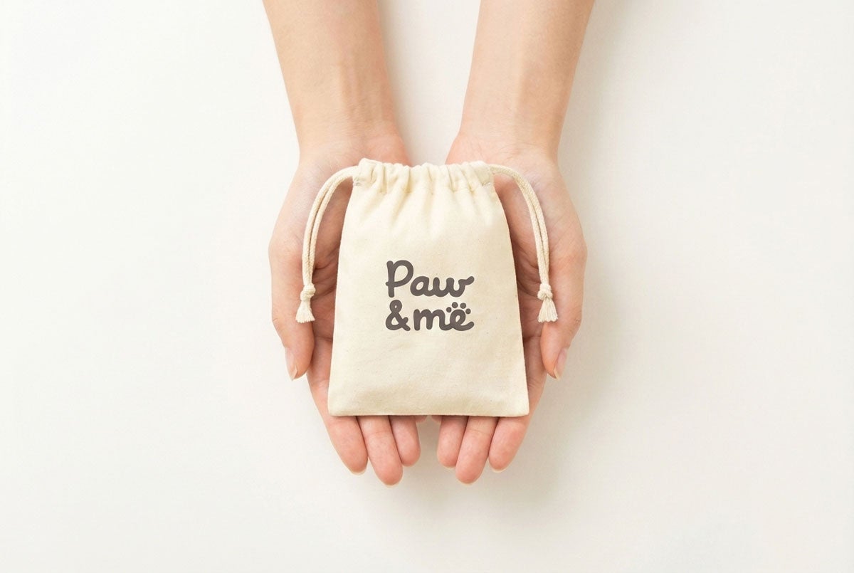 【内容】新規会員登録&メールマガジン登録で、『Paw&me』オリジナルロゴ入り巾着袋+次回以降のお買い物に使えるクーポン