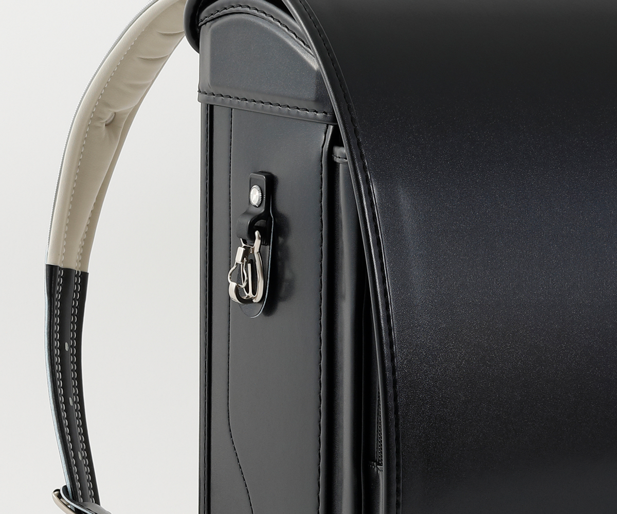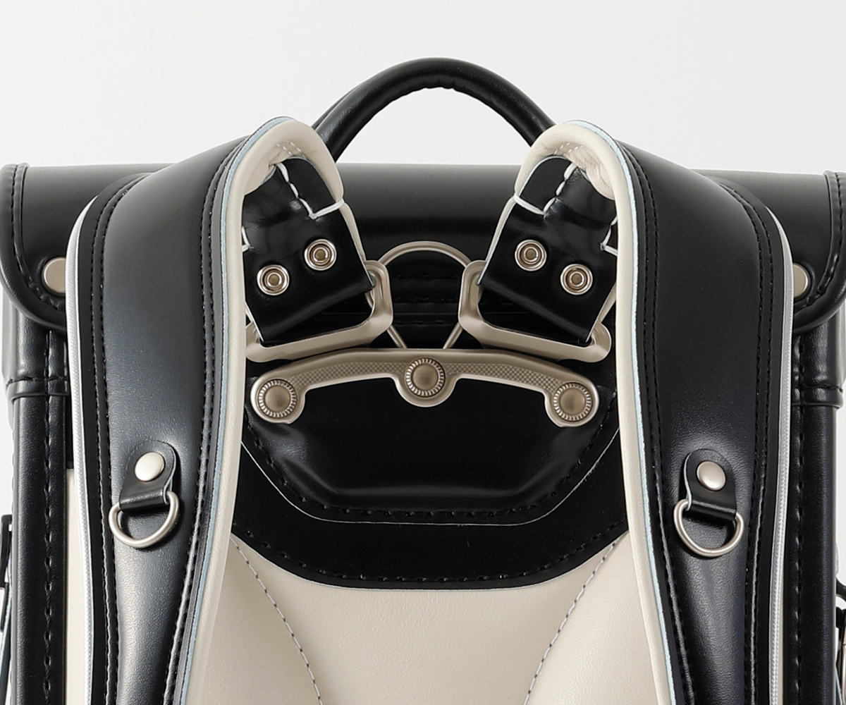 力のかかる部分に金具を使用し強度をあげつつ内側縫いにする事で、軽量化にも対応。