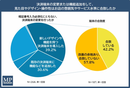 エム・ピー・ソリューションが実施した実態調査によると、PIN入力必須化に伴い決済端末の変更や機能追加を行った店舗のうち、57.8%が「端末の見た目や操作性が、お店の雰囲気やサービス水準に合致していない(改善の余地がある)」と回答しており、既存の決済端末に対する満足度が低い層が一定数存在することが明らかになりました。改善を望む点としては、「洗練されたデザイン」「サイズ感、薄型化」などが挙げられました。