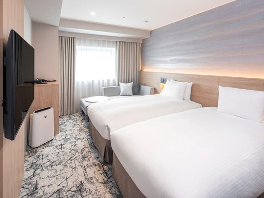 2025年に大規模な客室のリニューアル工事を行い、全219室の改装が完了いたしました。16種の客室タイプを擁し、最大1室5名まで宿泊が可能です。高層階にはキッチンや洗濯機付の客室もあり、様々なシーンでご利用いただけます。また、館内には天然温泉の大浴場を完備。旅の疲れを癒し、快適なご滞在をお約束いたします。客室(通常タイプ)ダブルルーム・ツインルームの他、2段ベッドを利用して5名まで利用可能な客室もございます。ほぼすべてのツインルームでソファーベッドを利用して最大3名まで宿泊が可能なため、お子様とご一緒のファミリー旅行や、ご友人とのご旅行に最適です。