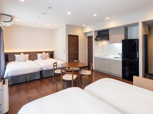 客室内にはキッチン、冷蔵庫などの家電、ドラム式洗濯機を用意。バスルームには洗い場もあり、ご自宅のようにお寛ぎいただけます。