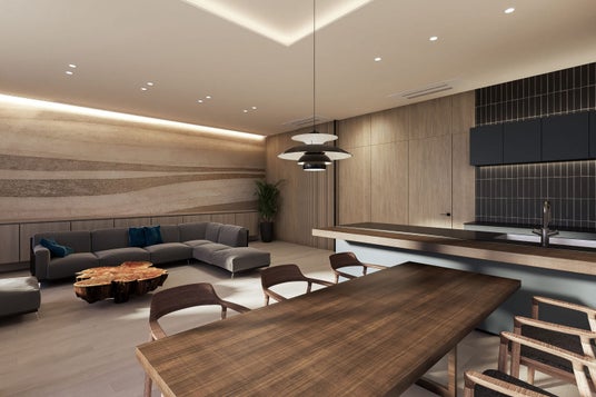 リビング・ダイニング完成予想CG イタリア製Valcucineのラグジュアリーなキッチンを備える